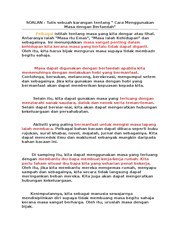 Golongan pelajar boleh memanfaatkan masa lapang. Buat karangan 1Mak yang sedang sakit masa kita tengah periksa. Pelbagai istilah tentang masa yang kita dengar atau lihat.